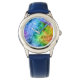 Kinderuhr aus Edelstahl mit blauem Lederarmband