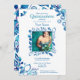 Einfache Ernte und Positionierung Ihres Fotos. Dieses blühende Quinceañera-Angebot wird Ihr Foto in einem dekorativen blühenden Rahmen präsentieren. Elegantes blaues Quinceanera Papier in dieser Sammlung steht für eine Vielzahl von Formen und Größen. Dieses kristallblaue Design ist vielseitig für einen Winter- oder Frühlingsquinceanera.
