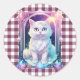 Crystal Cat Lila Black Kariert Niedlich White Kitt Runder Aufkleber