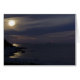 Dieses farbige, lang belichtete Foto-Nachtbild wurde am Crystal Crescent Beach in der Nähe der kleinen Fischergemeinde Sambro in der atlantischen kanadischen Provinz Nova Scotia an der Ostküste des nordamerikanischen Landes Kanada aufgenommen. Der Mond im dramatisch bewölkten Himmel erhellt die Küstenlinie, während das Licht des kleinen Bootes auf den Atlantischen Ozean reflektiert. Dieses wurde im Sommer im August während der Feierlichkeiten der Sou' Wester Days im Rahmen der Festlichkeiten aufgenommen.