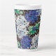 Ein lebendiges und abstraktes, modernes Digitalwerk mit eleganten, kristallartigen Blume, die aus lila, grünen, weißen und gemischten braunen Chips bestehen. Dieses dynamische Stück strahlt Energie und Eleganz aus und ist eine perfekte Ergänzung zu jeder Dekoration, z.B. Trinkbehälter, Kaffee-Tasse