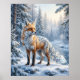 A graceful fox stands alert in fresh snow, enhanced with dazzling crystal formations across its tail, shoulders, and ears. Clear quartz textures, pale blue highlights, silver reflections, and subtle prism sparkle blend wildlife realism with luxurious fantasy design. Frosted pine trees, icy stones, soft dawn light, and drifting winter mist create a peaceful enchanted forest atmosphere. Elegant and collectible, this artwork is perfect for winter décor, woodland interiors, fox lovers, cozy cabins, and gift shoppers seeking refined animal wall art.
