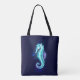Frische, kristallklare, eisige, polygonale Seepferde auf dunkelblauem Hintergrund.