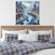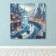 Diese Kristalleiswelt in einer futuristischen Eiszeit hat eine zarte kristalline Architektur und futuristische Schlitten, die durch das eisige Wasser dieser Stadt auf diesem Kunstwerk der Leinwand reisen.