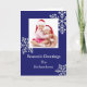 Foto illustrierte Kristallschneeflocken heben Ihr Familienbild auf dieser personalisierten Urlaubskarte hervor.