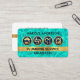 Die Abdeckung ist mit einer blauen Wasseroberfläche ausgelegt, um Überflutungen zu repräsentieren. Das Hauptstück sind Ihre vier goldenen Symbole. Das erste Symbol ist ein Zuhause-Wasserhahn - Ihre Expertise in Zuhause-Installationen, das zweite ist für Rohrleitungen, das dritte ist ein Spanner und Schlüssel für Reparaturen und Installation und schließlich die Waschmaschine Ikone - zur Reparatur der Wasserquellen-Ausrüstung. Ihr Name steht oben auf der Karte, während im Süden der Firmenname in einer Goldschicht und die Kontaktnummer des Unternehmens liegen. Auf der Rückseite, in einem weißen Deckel, haben Sie einen goldenen Streifen in der Nähe der Mitte, um als Demarkationslinie zu fungieren. An der Spitze steht Ihr Name und Ihr Jobtitel. Darauf folgen Ihre Kontaktdaten und eine Slogan-Beschriftung, die Sie ändern können. Eine großartige Karte für Klempner. #plumbing #plumbingandheat #plumbingtools #pipe #pipefitter #waterpipe #handyman #zazzlemade