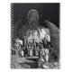 Farbe zeichn von Cthulhu Türme über einem Dörfchen am Wasser.