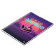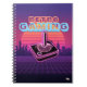 A vibrant retro-wave notebook featuring a classic Atari controller with glowing neon lights against a sunset-hued grid background. The bold title "GAMING RETRO" appears in an 80s arcade font, radiating nostalgia.
