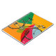 This captivating image showcases a detailed drawing of a vintage racing bicycle. The classic design of the road bike is rendered with intricate linework, highlighting its sleek frame, drop handlebars, and spoked wheels. Set against a dynamic and colorful vector background, the artwork pops with modern energy. The abstract vector art features bold blocks and flowing shapes in a variety of hues, creating a visually striking contrast with the detailed bicycle illustration.