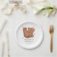 Niedliche Bär Thema Babydusche Papiertüte mit Illustration eines Krübes mit rosa Bogen und Herzen. Ideal für eine Dusche im Herbst für ein Mädchen.