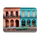 Havanna, Kuba: farbenfrohe Architektur und Klasse, Vintage amerikanische Autos. Dieser kubanische Magnet zeigt eine typische La Habana-Straßenszene.