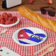Ausschnitt der kubanischen Nationalflagge aus der Herzform mit Retro-Text-Overlay