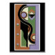 Kunst-Dekoära Cubistentwurf eines Gesichtes im schwarzen, braunen, lila, Sahne- und olivgrünen Grün. Sie brauchen nicht, es zu verstehen, um den Entwurf und die Farben zu genießen. Macht eine große Karte für jede mögliche Gelegenheit.