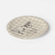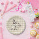 Niedliches handgezücktes Kaninchen und stilisiertes Blume Set auf einem warmen karierten neutralen Creme und beige Gingham. Dieses Design ist vollständig editierbar und Sie können Ihren eigenen Text hinzufügen. Die Kollektion Cudly Bunny Rabbit Bonanza bietet auch eine Version dieser Platte mit einem Happy Oaster Text.