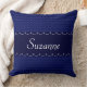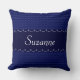Blaues Muster Kissen, das Sie mit jedem Namen personalisieren können. Front hat den Namen, hinten hat eine Silhouette.