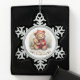 Celebrate your little one’s first holiday with a keepsake full of love and snuggles. This adorable snowflake ornament features two festive teddy bears bundled in red and white winter gear, nestled in a snowy scene with holly accents. The larger bear lovingly cradles the smaller one, capturing the warmth and wonder of a baby's first Christmas. A perfect gift for new parents, grandparents, or anyone cherishing this magical milestone.