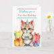 Niedliche Geburtstag für Mädchen. Niedlich für Kinder oder Erwachsene. Ein niedliches Kätzchen mit einem Kuchen, umgeben von Geburtstagsgeschenken. Sie können die Karte anpassen, indem Sie einen Namen im personalisierenden Bereich hinzufügen. Niedliche Welpe und Geburtstagskneipe inklusive Farbseite.