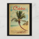 Ein einzigartig Retro Mitte des Jahrhunderts moderne Culebra Puerto Rico Kunstdruck in Vintage Reise Poster Stil. Es verfügt über eine geschwungene Palme am Sandstrand mit Ozean unter einem blauen bewölkten Himmel.