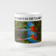 Tasse des Kaffees, wo der Schönheit der Guacamayas in es seinen glänzenden Farben und der natürlichen Schönheit zeigt.