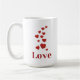 White coffee mug. "LOVE" with hearts.