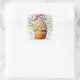 Round sticker is shown with a cute cupcake birthday confetti print.