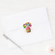 Round sticker is shown with a cute cupcake birthday balloons print.