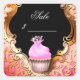 Cupcake Business Card Elegante Damaske Rosa Schwar Quadratischer Aufkleber