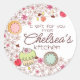 Niedlich doodle Stil Kuchen, Kekse und Blume auf diesem "aus der Küche von" oder "hausgemachte von" Aufkleber für einen Bäcker, Zuhause Backbiz, Bäckerei oder Konditorei Koch, personalisiert mit Ihrem Text-und Farbschema, perfekt zum Gaben oder Verkauf von gebackenen Waren.