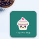 Untersetzer mit einem niedlichen Kuchen im Kawaii-Stil und einem personalisierten Text. Eine gute Idee für ein Kuchengeschäft, eine Geburtstagsparty oder ein Brautparty!