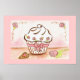 Ein Kuchen mit hübschem rosa Bug ist der Mittelpunkt dieses Posters. Das Bild stammt von einer originalen Aquarellfarbe.