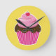 Vector Illustrationskuchen mit Kirsche, geschmolzene Schokolade und farbenprächtiges Toppen. Anpassbare Hintergrundfarbe. Füge deinen eigenen Text hinzu.