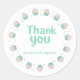 Bunt, herzlich und backofenthemebezogen – dieser Dankeschön-Aufkleber für Backgeschäfte verfügt über ein kreisförmiges Layout mit illustrierten Cupcakes und Streuseln, die eine spielerische Umrandung bilden. Der Text in der Mitte lautet "Danke" in Mintgrün und "Kleine Charge, große Liebe" in sanftem Blau, was ihn ideal für Dankeschön-Aufkleber für kleine Bäckereien, hausgemachte Dankeschön-Aufkleber und Konditorei-Dankeschön-Aufkleber macht, die Fürsorge und Handwerk hervorheben möchten.