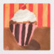 Art print of a cupcake with vanilla frosting and a cherry on top.