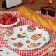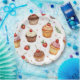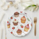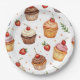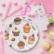 Ein nahtloses Muster mit einem Sortiment von Kuchen mit verschiedenen farbigen Zuckergüssen und Ochsen, einschließlich Erdbeeren und Kirschen, auf weißem Hintergrund, Ausgezeichnet für Geburtstagspartys!