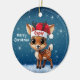 Cupid! Celebrate the holiday season with this festive round ceramic red ornament featuring an endearing woodland forest animal cartoon graphic of a cute baby reindeer wearing a Santa hat, and Merry Christmas written in white. Perfect deer with antlers for decorating your tree or as a thoughtful gift, this whimsical doe decor makes a cherished keepsake for years to come. Customize by changing the text, the font, the font color, or remove the text. You can even transfer this design onto other products. Enjoy this design your way! Check out ForestBabies Xmas Deer Collection for matching decorations. 🎄🦌