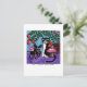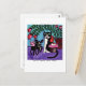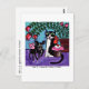 Postkarte eines Gemäldes von Cindy Pop mit Angel Dog und Angel Cat, die einen Kuppelkuchen teilen.