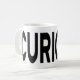 Wraparound typography featuring the word CURIOUS in bold black lettering. A thoughtful design for people who value curiosity, learning, and education.