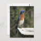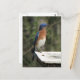 Auf der Postkarte befindet sich ein Foto eines männlichen östlichen Bluebvogels auf seinem Nestkasten.