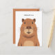 Eine charmante Abbildung einer Capybara, die direkt nach vorn blickt, mit einem ruhigen und sanften Ausdruck. Das Bild zeigt die einzigartigen Merkmale der Capybara, einschließlich ihres runden Gesichts, ihrer ausdrucksvollen Augen und ihrer unverwechselbaren Whiskers. Der minimalistische Stil und die erdigen Farbtöne verleihen dem Hotel ein sehr ansprechendes Aussehen, das für die Liebhaber von Tieren visuell ist.