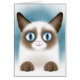 Lächelnde, blau-mit Augen, flauschige Siamkatze mit blauem Hintergrund.