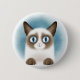 Lächelnde, blau-mit Augen, flauschige Siamkatze mit blauem Hintergrund.