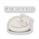 Adorable white cartoon cat curled up in a cozy ball with the phrase “My Plan: Sleep, Eat, Be a Cat”. A funny and relatable design for cat lovers, perfect for stickers, gifts, and anyone who enjoys lazy cat vibes.