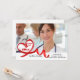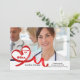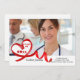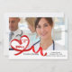 Ein Herz aus rotem Curling Band kann Ihren Namen, das Datum des Abschlusses, den Schulnamen usw. tragen. Ein weißer Rahmen unter Ihrem Foto kann Ihre Ankündigung des Abschlusses und Details eines Party auf der Rückseite enthalten.