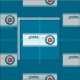 Eine Abbildung einer Eisbahn, die als Curling-Blatt bezeichnet wird. Dieses Design enthält ein Diagramm, das einige gängige Kühlterminologie erklärt. Enthält Curl- und Hauswächter.