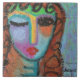 Meine trendige abstrakte Acrylmalerei auf OSB einer Frau mit lockigen Knacken auf Keramik-Fliesen