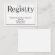 Diese einfache und elegante Registrierungskarte mit Curly Print Black and White Registry Information ist ideal als Einbindung in Ihre Hochzeitseinladung.