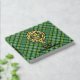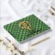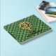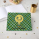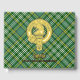 Clan Currie Löwe Wappen Abzeichen umgeben von einem Gurt und Schnalle über Tartan Hintergrund. Benutzerdefinierter Vorder-, Rücken- und Rückentext.