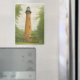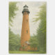 This captivating watercolor portrays the majestic Currituck Beach Lighthouse, a beacon of history and enduring strength on the Outer Banks. Its distinctive unpainted brick facade, a rich reddish-brown, stands proudly against a soft, overcast sky. Lush green foliage frames the towering structure, with the vibrant leaves of surrounding trees providing a verdant embrace, and a meticulously manicured lawn stretching invitingly in the foreground. The warm tones of the brick contrast beautifully with the cool greens, highlighting the natural beauty and timeless presence of this historic landmark. This piece captures the serene dignity and rustic charm of one of North Carolina's beloved lighthouses.
