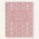 This elegant, personalized journal features a luxury curved vector frame repeated in a soft, refined pattern. Designed in Pearl White accents on a Dusty Rose background, this notebook blends femininity and modern royalty.