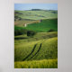 Plakatdruck einer fast abstrakten Landschaft mit kurvigen grünen Linien in den Gerstenfeldern zwischen Pienza und San Quirico d'Orcia im Val d'Orcia in der Toskana, Italien. Tolle Dekoration!